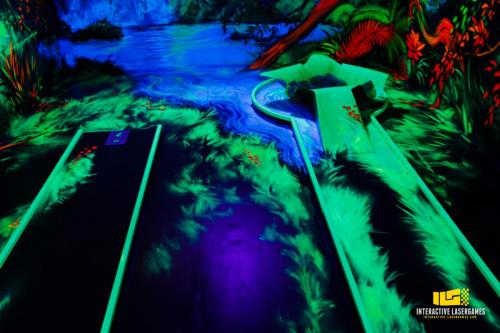 Die ActionZone bietet seit dem 20. Oktober 2017 in Düsseldorf Schwarzlicht Minigolf Spaß für Groß und Klein in ganz besonders aufregendem Blacklight-Outfit. Familienfeier, Junggesellenabschied oder Mitarbeiterausflug, Minigolf im Blacklight-Look mit überraschenden Effekten ist ein Freizeitspaß für Jedermann. Das Team von Interactive Lasergames installierte die 3D Blacklight Golf-Anlage in gewohnt professioneller Manier und die Schwarzlicht-Künstler gaben auf den 300m² Vollgas wie immer.