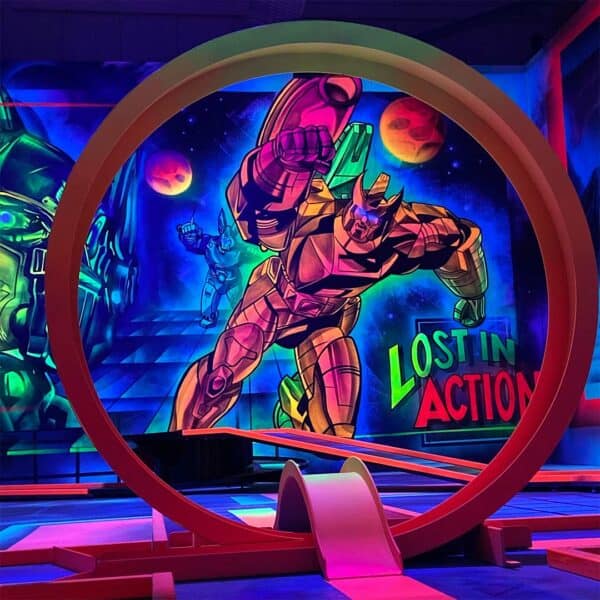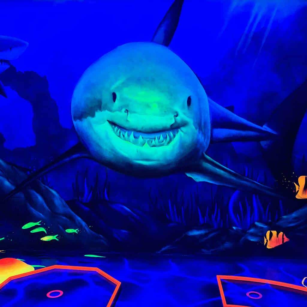 Setzen Sie Ihre 3D Brille auf und erleben Sie das Ganze hautnah. 3D Schwarzlicht Designs liegen im Trend und lassen Besucher von Freizeitparks und Indoorhallen in neue Welten eintauchen.